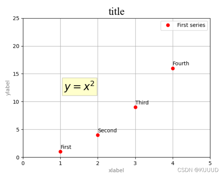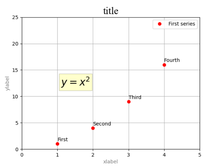 plt.legend(['First series'], loc= 'best')plt.savefig('pyplot.png')