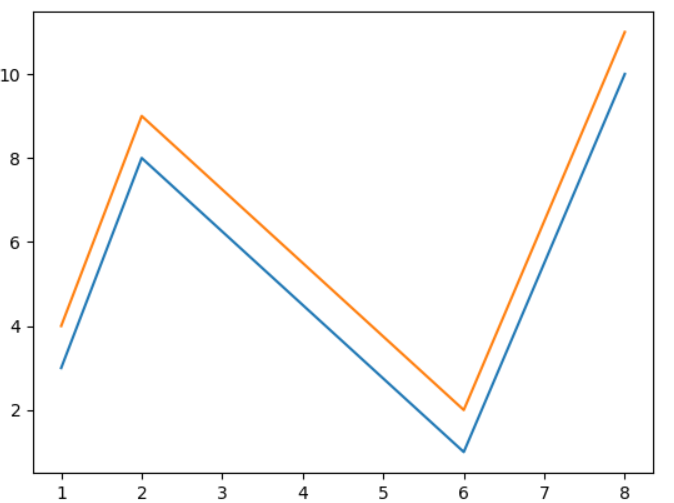 结果如下所示,可以看出 plot()可以同时输入输出两组x,y组数且两组组数数值也都一一对应: