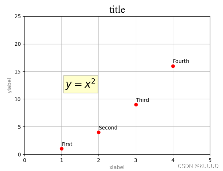 5)plt.ylabel()方法:设置 y 轴的标签,与标题的默认一样;
