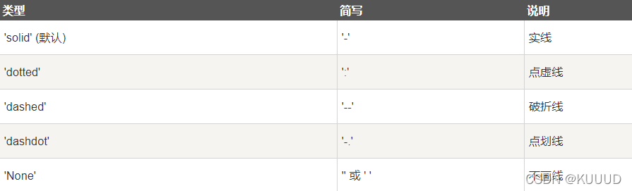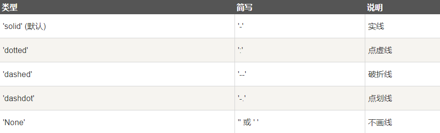 线的类型可以使用 linestyle 参数来定义,简写为 ls: