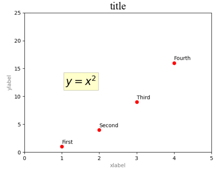 6)plt.text()方法:text(x, y, s, fontdict=None, **kwargs),x,y为文本在图形的位置,s为要添加的字符串(默认为英文,要添加中文需自己导入语言包),fontdict为文本要使用的字体,kwargs为key word关键字,代码展示如下: