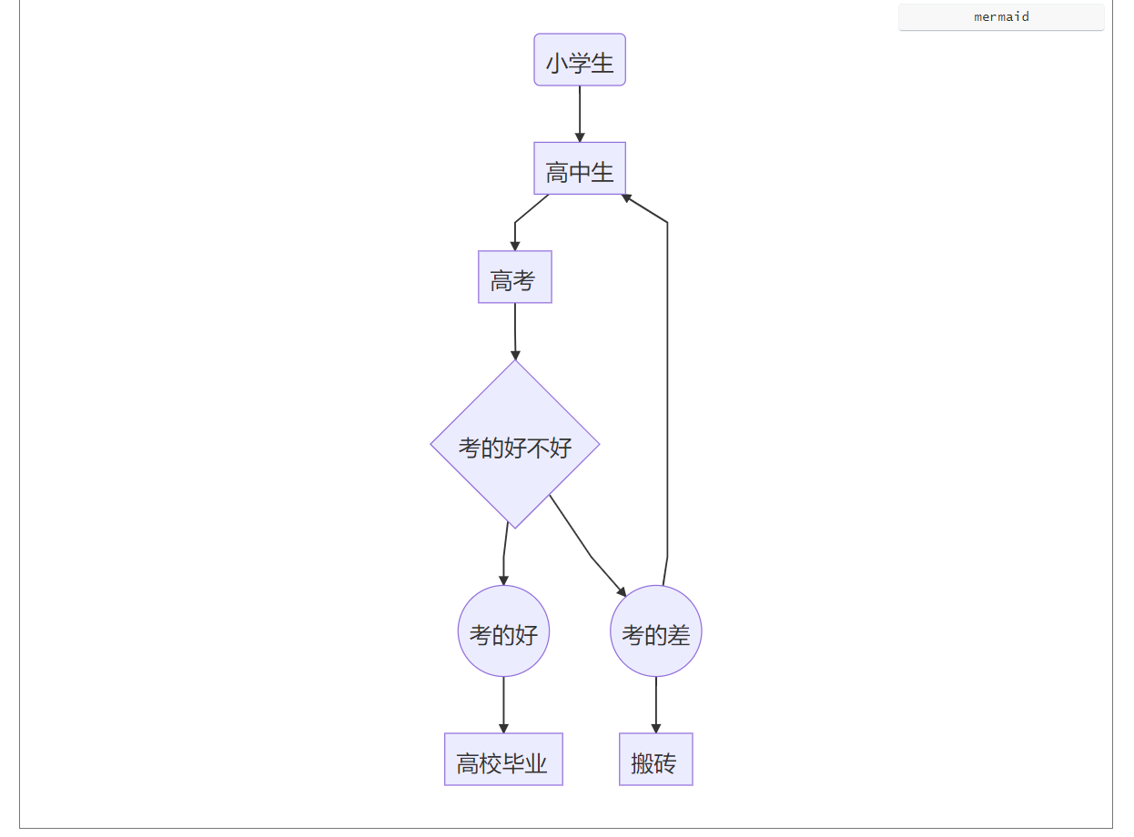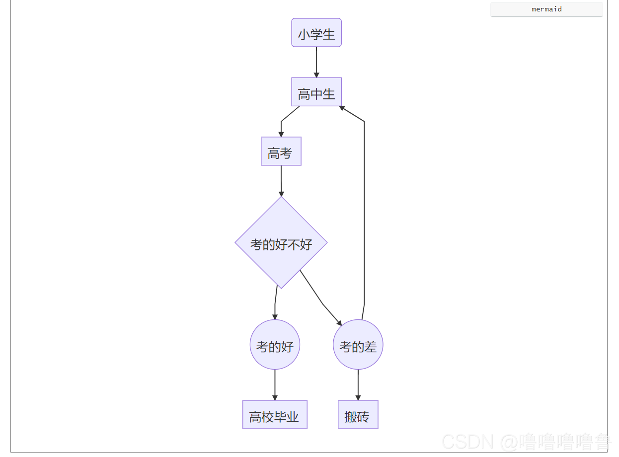 id1(小学生)-->id2[高中生]-->id3[高考]-->id4{考的好不好}