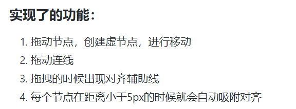 笔者也是找了很多线上的方案,但是现在的方案(如jsplumb,g6)看文档比较麻烦,而且配置非常多,有时候还不满足需求(比如需要对齐辅助线和吸附的功能)。想用一些高级功能还要付费。