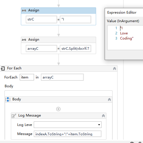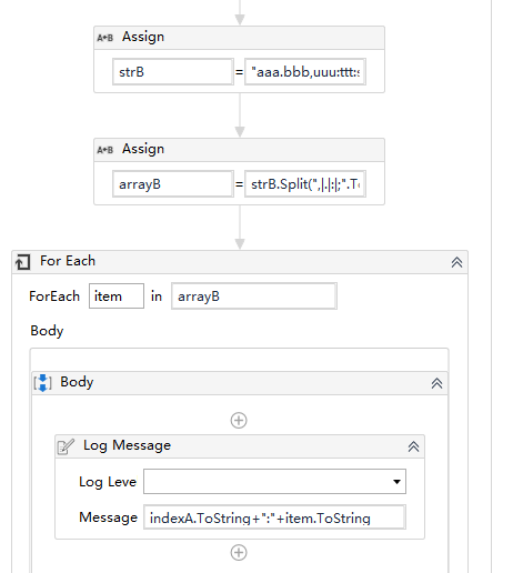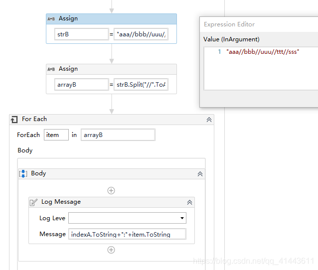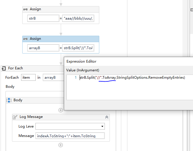 前面的indexA表示的是数组序号,这是一接触Uipath就了解到的分割用法,但有一个问题,只能分割单一字符,比如例子中的“/”.