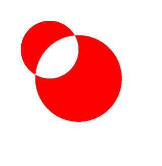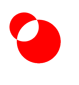 override fun onDraw(canvas: Canvas?) {super.onDraw(canvas)path1.reset()path2.reset()canvas?.apply {path1.addCircle(200f, 200f, radius1, Direction.CW)path2.addCircle(400f, 400f, radius2, Direction.CW)path1.op(path2, ops)path1.close()path2.close()canvas.drawPath(path1, paint1)