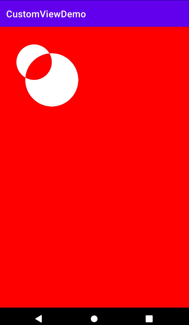 override fun onDraw(canvas: Canvas?) {super.onDraw(canvas)path1.reset()canvas?.apply {path1.addCircle(200f, 200f, 100f, Path.Direction.CW)path1.addCircle(300f, 300f, 150f, Path.Direction.CW)path1.fillType = Path.FillType.WINDINGdrawPath(path1, paint)}}
