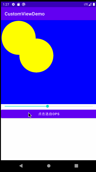 本示例中可以通过拖动 Seekbar 改变两个圆的大小,通过点击按钮的弹窗列表框选择不同的 Path.Ops 属性查看效果