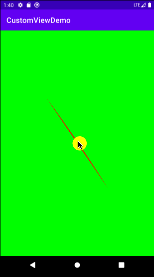图中的黄色点就是二阶贝塞尔曲线的控制点,这个控制点跟随手指移动然后动态刷新二阶贝塞尔曲线的形态