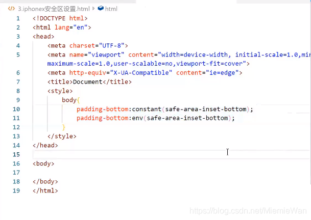 实现:meta标签里content属性中添加viewport-fit=v=cover,