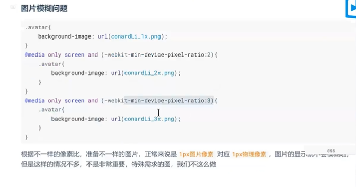 问题:在电脑上1px的像素,呈现到手机时会根据设备像素比变成2px或3px,图片被放大了。