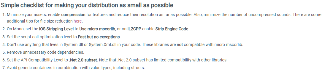 针对iOS平台优化,Unity官方文档中给了说明Optimizing Performance on iOS,其中专门说了具体优化项。文中还提到:在iOS环境下,不要使用Try/cath语句。