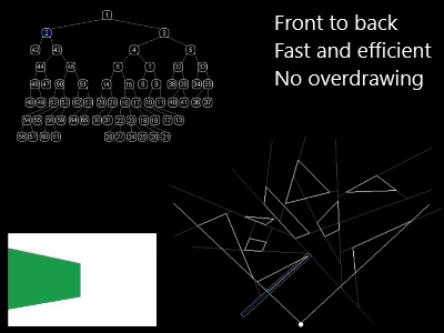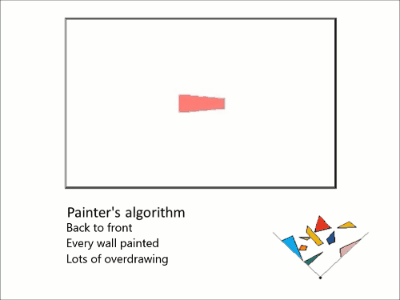 - Painter’s algorithm, Raycasting, Binary Space Partitioning tree
