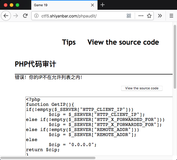 进入题目后,直接点开View the source code查看源代码。