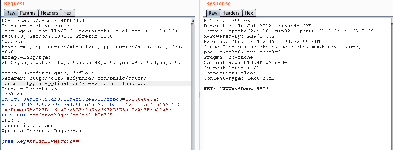 这是一道脑洞题!所以访问抓包,看到响应包中有一个字段Content-Row,将这个参数的值当做pass+key提交,就拿到了flag。