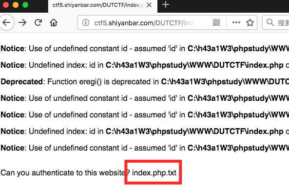 打开题目后,发现源码中有index.txt,此文件为该题目源码,打开进行审计。