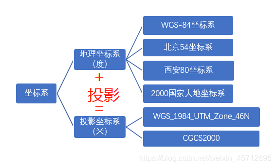 投影坐标因此由地理坐标系和投影组成,所以投影坐标系必然包括有一个地理坐标系