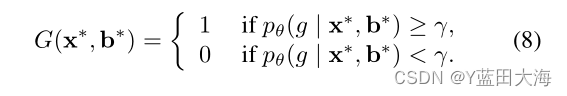 面向目标检测用于目标检测。OOD检测可以表述为一个二元分类问题,区分分布内和分布外的对象。设px表示X上的边际概率分布。给定测试输入X∗ ∼ P X以及对象b∗ 由目标检测器预测,目标是预测pθ(g | x∗ ,b∗ )。我们使用g=1表示检测到的对象是ID,g=0表示OOD,语义不支持Y。