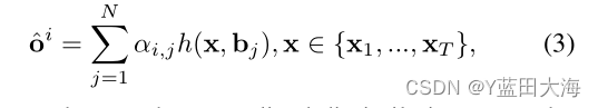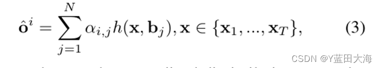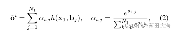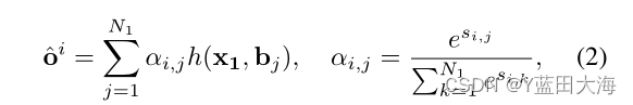 我们对x1帧中的对象特征进行加权平均。使用多个对象捕获未知量的不同分布。权重α定义为不相似性得分的归一化指数