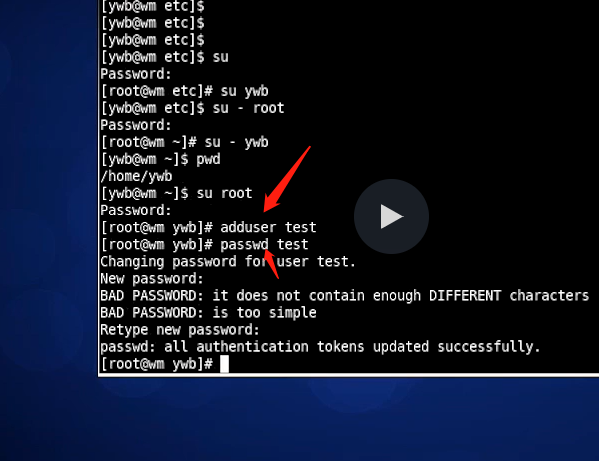 添加用户用命令:adduser 比如增加个叫test的用户,用命令:adduser test (等同于useradd test )