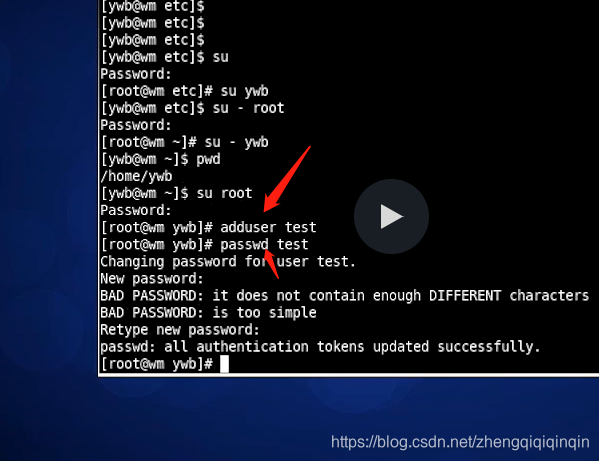 给新添加的用户设置密码用:passwd 命令,比如给test用户设置密码用:passwd test,然后会提示你输入密码,以及在此输入确认密码