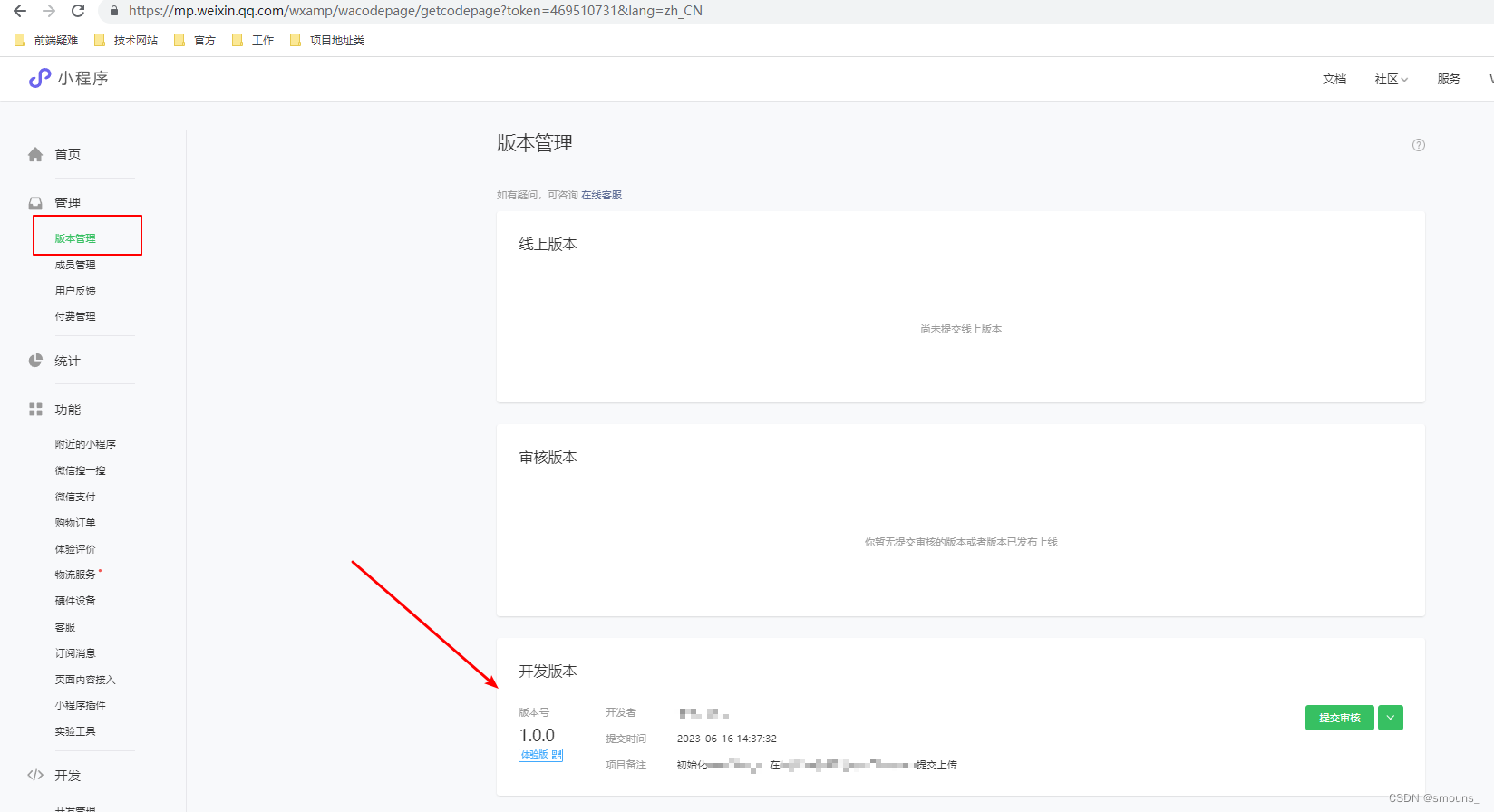 测试完成后,可以在版本管理中 提交审核