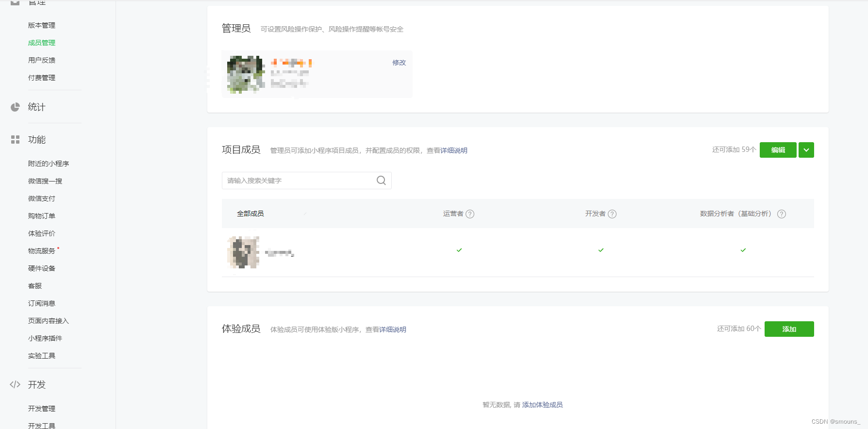 生成的体验版的小程序,可以供测试等人员使用,需要在成员管理中添加体验成员