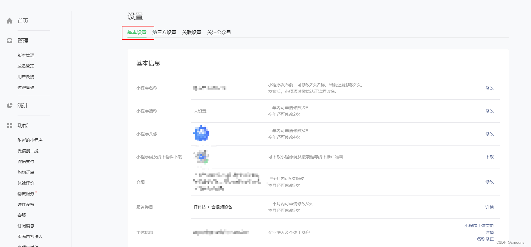设置中确定小程序的相关信息,后续更改可能需要费用等
