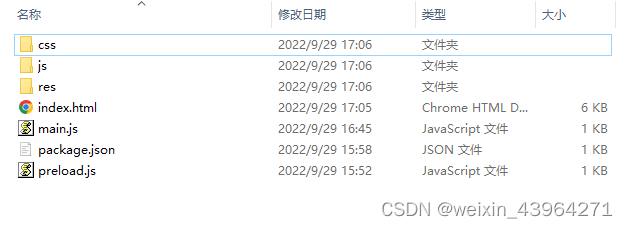 3.新建package.json和main.js,还有preload.js,位置都在项目的根目录下