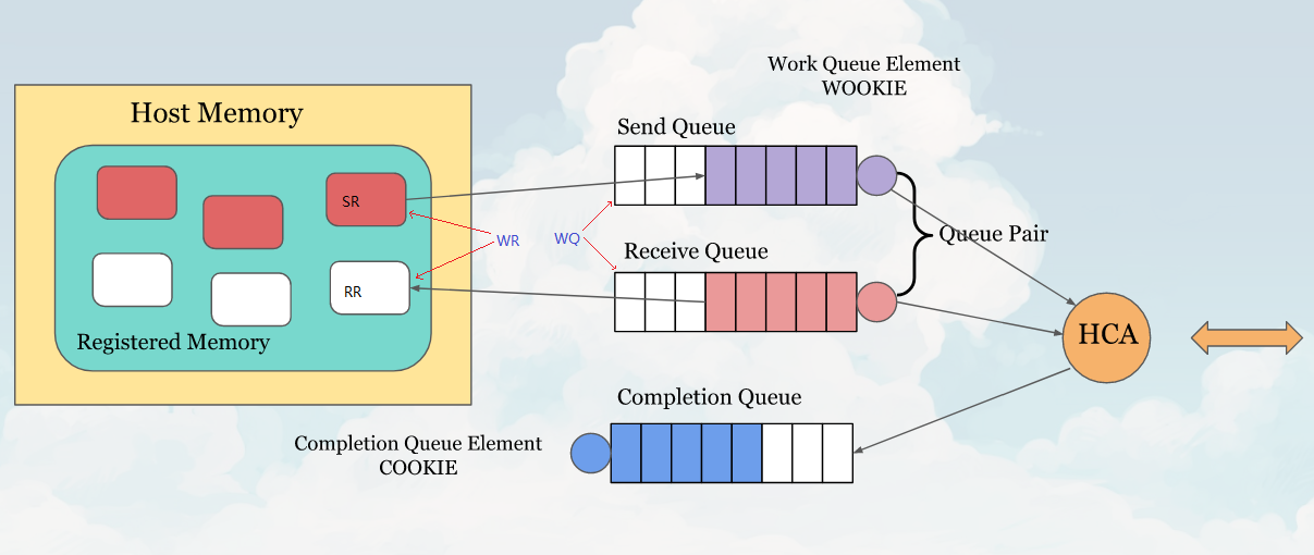 RDMA提供了一套software transport interface,方便用户创建传输请求-Work Request(WR),WR中描述了应用希望传输到Channel对端的消息内容。
