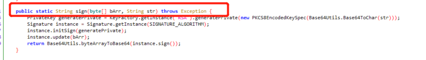 8v+gOIQ8ZfA='''private_keyBytes = base64.b64decode(privateKey)priKey = RSA.importKey(private_keyBytes)#priKey = RSA.importKey(privateKey)signer = PKCS1_v1_5.new(priKey)hash_obj = MD5.new(data.encode('utf-8'))signature = base64.b64encode(signer.sign(hash_obj))print(signature)res_sign = signature.decode('utf8')print(res_sign)return signatureif __name__ == '__main__':encrData ='{"phone":17269558830,"password":LHoOVKha,"timestamp":1611749330857,"appName":"₩テᅠ¥タ゚│ᄡᄋ₩ᆲᄒ"}'print(RSA_sign(encrData)) 几个注意事项: