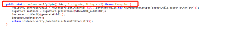 ZthNou5cnqVyRurn3UXxELn1VfHkLc4nSZie+pMwiBRB4ViuAH1+w/gyvwIDAQAB'''public_keyBytes = base64.b64decode(publicKey)pubKey = RSA.importKey(public_keyBytes)#pubKey = RSA.importKey(publicKey)h = MD5.new(data.encode('utf-8'))verifier = PKCS1_v1_5.new(pubKey)return verifier.verify(h, base64.b64decode(signature)) 注意事项: