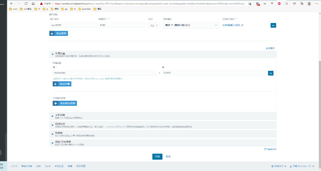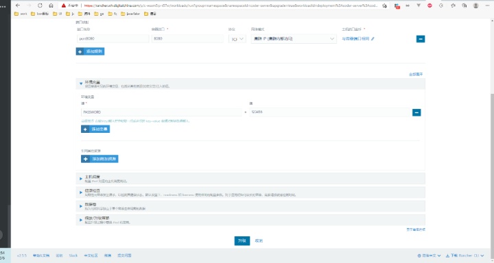 3.设置环境变量,设置PASSWORD环境变量即为pod应用的启动访问密码。