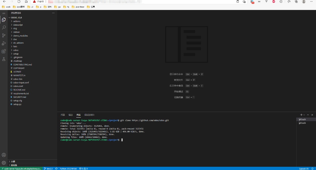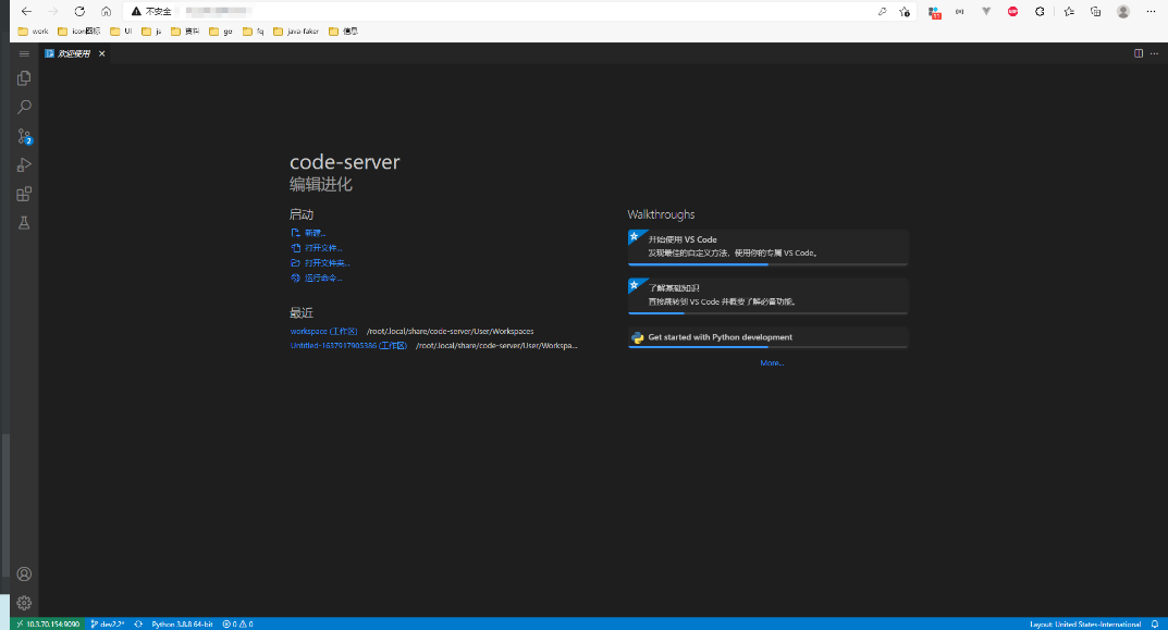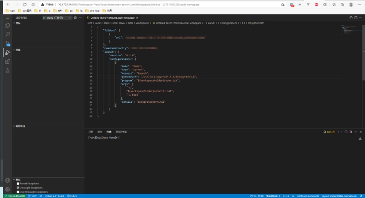 输入配置密码即可访问,VSCode正常可以安装配置和运行调试代码,基本功能和桌面版VSCode相同。