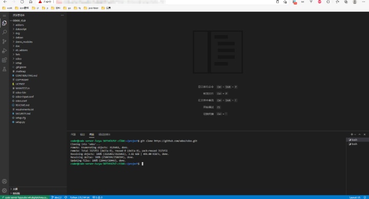 4、通过sh ./bin/code-server 启动服务,输出一下即可访问VSCode Online服务: