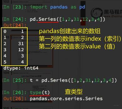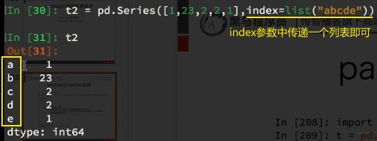 Series是一种类似于一维数组的对象,它由一组数据(各种NumPy数据类型)以及一组与之相关的 数据标签(即索引)组成,即index和values两部分,可以通过索引的方式选取Series中的单个或一组值。