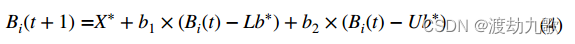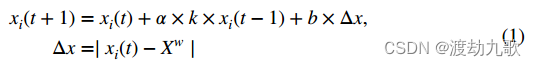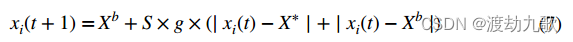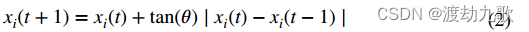 式(2)中,∣xi (t)−xi (t−1)∣为第i只屎壳虫在第n次迭代时的位置与第t−1次迭代时的位置之差。因此,滚球蜣螂的位置更新与当前和历史信息密切相关,请注意,如果等于0、