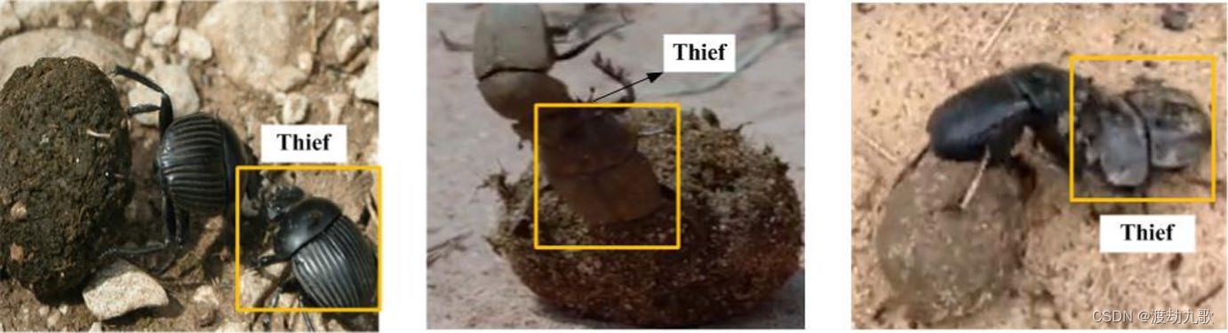 另一方面,有些屎壳郎,被称为小偷,会从其他屎壳郎身上偷粪球(见图7)。需要指出的是,这是自然界中很常见的现象。由(5)可知,是最优食物源。因此,我们可以假设周围的