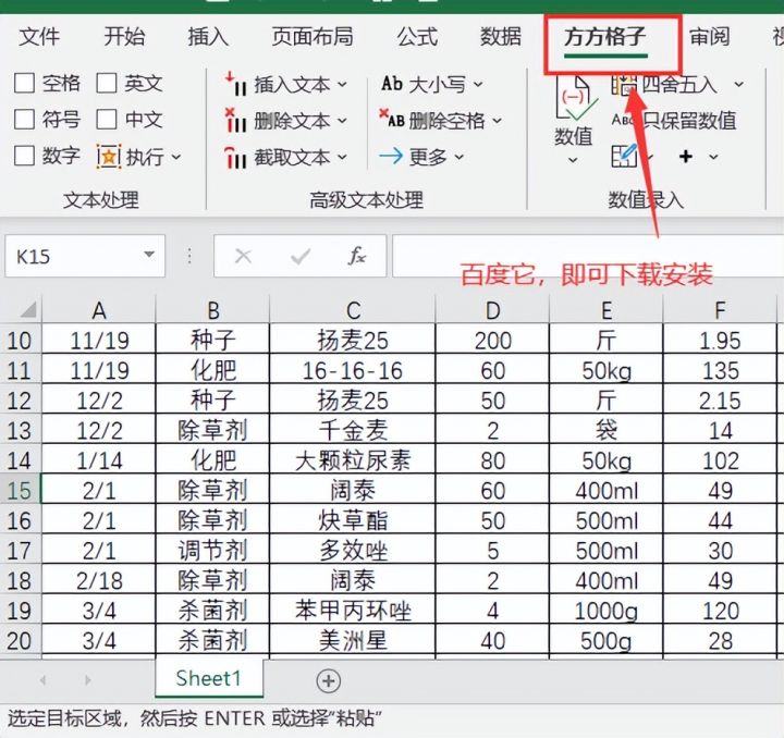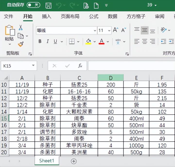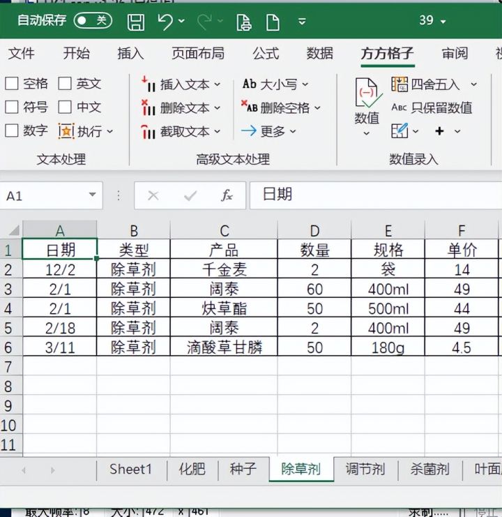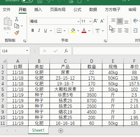 1.如下图是某农场农资使用记录表,现在我们想要快速将这个表格按照农资类型拆分开。