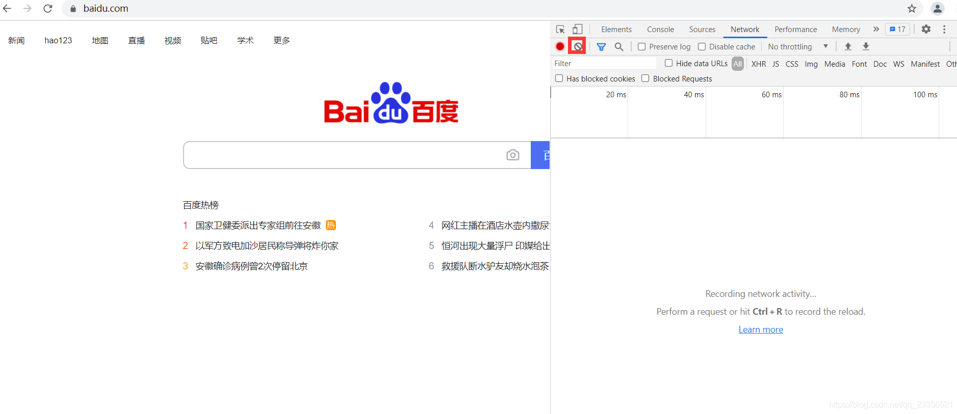- 2)进入百度搜索,清掉所有请求记录