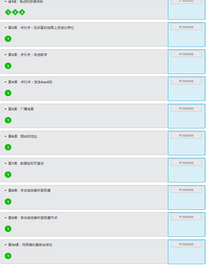 在 code.org 上完成互联⽹模拟器的系列任务( https://studio.code.org/s/netsim ) 如果已注册账号则⽆需再注册 提示:此任务需⼩组内部协作才能完成 理解点对点、⼴播及路由等不同的消息发送⽅式 理解这些不同通讯⽅式及其相关⽹络协议的概念 这个任务只需要按照网站的教程/提示一步步操作完成。我是用老师账号在手机登录、学生账号在浏览器登录独立完成任务的。