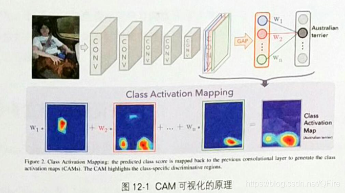 CAM可视化(Class Activation Mapping,类激活图),原理是全局平均池化层(GlobalAveragePooling, GAP)通常用在CNN最后一层,用于降维,使用GAP层可以极大地降低特征的维度,使用全连接层参数不至于过多,保留了特征的强度信息,丢弃了特征的位置信息,因为是分类问题,对位置信息不敏感,所以使用GAP层来降维效果很好。周博磊指出,可以对CNN的输出加权平均,权重是GAP层到这个分类的权重。这样就能得到一个CAM可视化图。简单来说,可以在最后一层卷积层后面加一层。