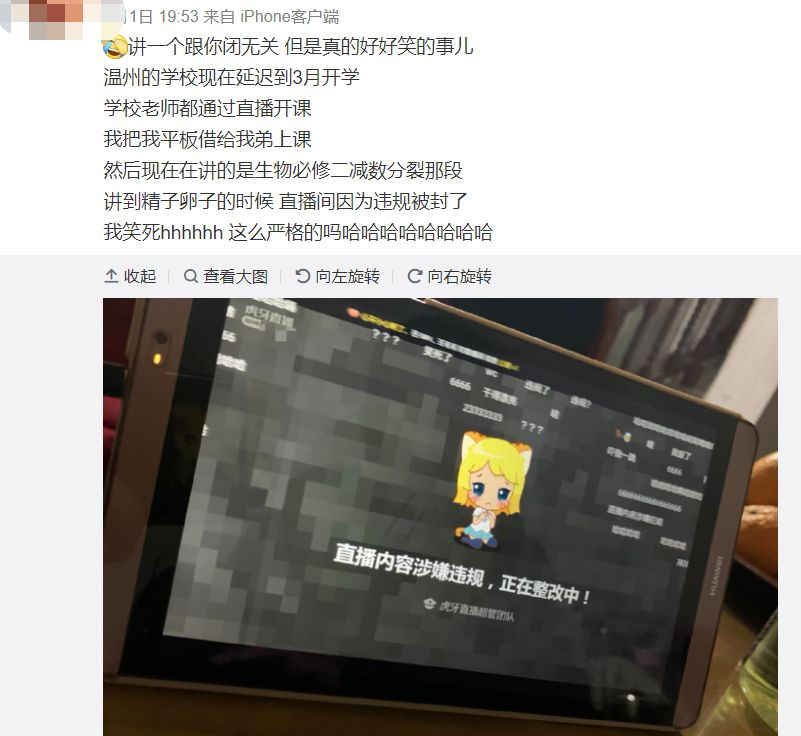 比如下面这个广为流传的生物老师讲减数分裂被封的微博,虎牙还特地出了声明,表明封禁原因是:引用了其他平台视频,触发平台版权保护机制。