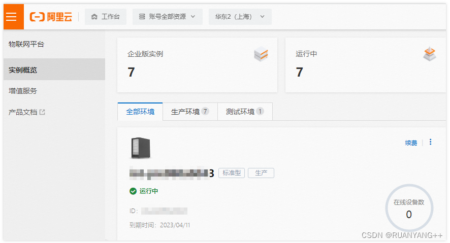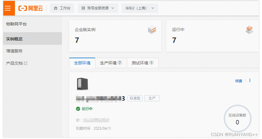 3在实例概览页面的全部环境下,找到对应的实例,单击实例ID或备注名称
