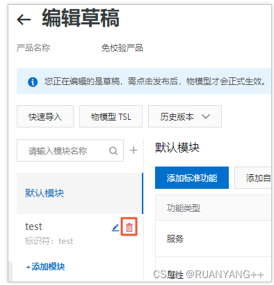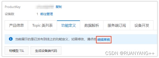 - 在产品详情页,单击功能定义页签,然后单击编辑草稿。