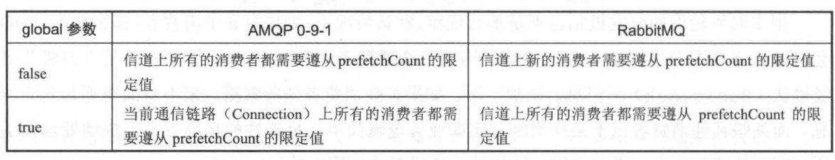 前面介绍的都只用到了prefetchCount 这个参数,当prefetchCount 设置为0 则表示没有上限。还有prefetchSize 这个参数表示消费者所能接收未确认消息的总体大小的上限,单位为B ,设置为0 则表示没有上限。对于一个信道来说,它可以同时消费多个队列,当设置了prefetchCount 大于0 时,这个信道需要和各个队列协调以确保发送的消息都没有超过所限定的prefetchCount 的值,这样会使RabbitMQ 的性能降低,尤其是这些队列分散在集群中的多个Broker 节点之中。RabbitMQ 为了提升相关的性能,在AMQPO-9-1 协议之上重新定义了global 这个参数。