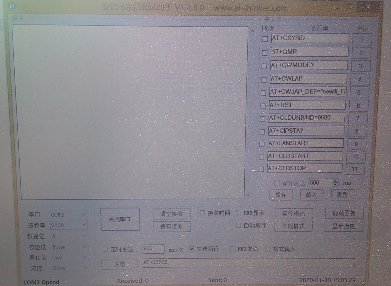 第三,提供esp8266模块5v电源,usb串口连接电脑,用杜邦线 连接两个硬件模块的rxd,txd,gnd,然后电脑打开串口调试工具,假定是com3,串口默认9600,n,8,1。