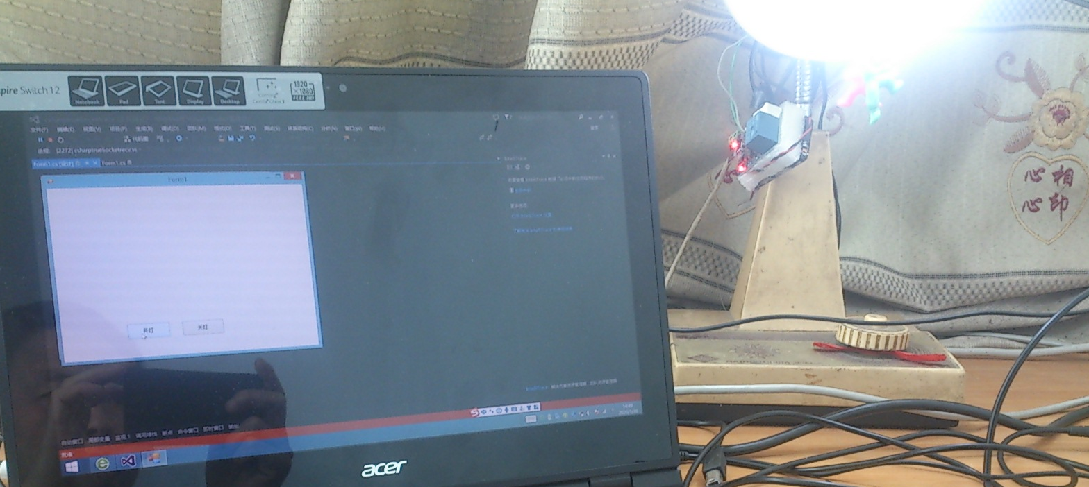 第五,假定你的模块继电器,已经接入台灯,那么现在拔掉杜邦线,我们使用无线掌控esp8266模块继电器开关灯,现在已经是万事具备,连接WiFi,运行我们的c#程序,点击按钮,继电器响了(有动作),灯亮了。