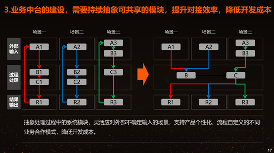 第四,中台上线后的持续闭环优化能力,中台最终体现的并不只是IT系统能力,还有业务运营能力能否固化至中台,使得业务场景不断丰富。这也是个很大的挑战。