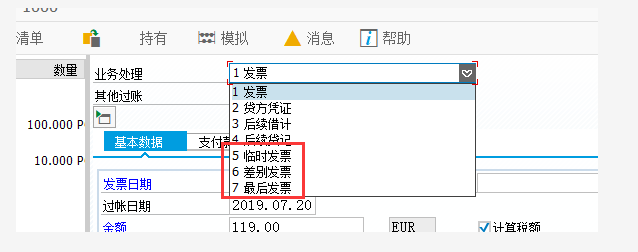 有些朋友可能在MIRO界面下,还见到过如下所示的“临时发票”、“差别发票”以及“最终发票”这三种特殊的业务类型,这三种业务类型是针对Commodity Purchasing Management业务进行设计的,这个的启用需要激活一些增强。